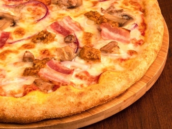 бекон, перец болгарский, помидор, шампиньоны, курица, моцарелла, соус bbq, соус жульен