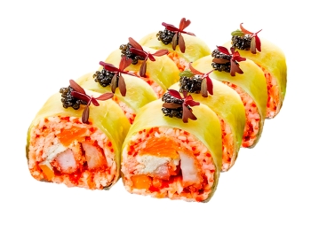 рис, нори, краб снежный, лосось, авокадо, редька дайкон, икра масаго