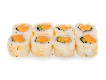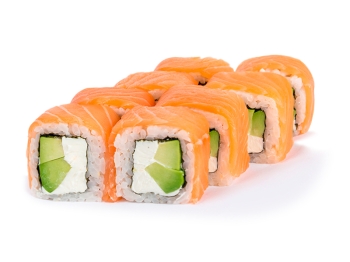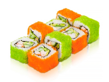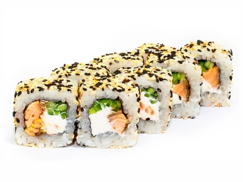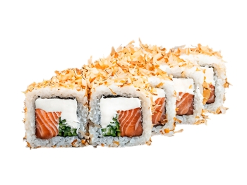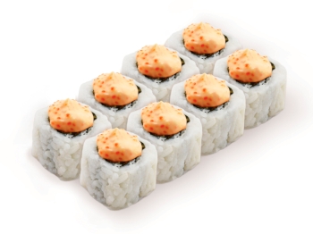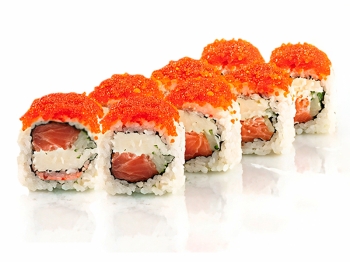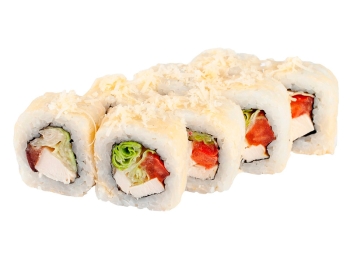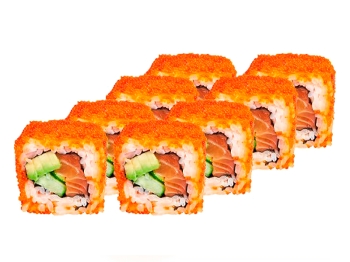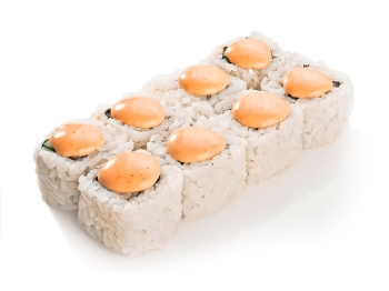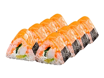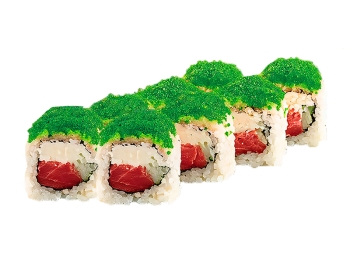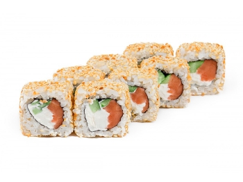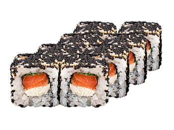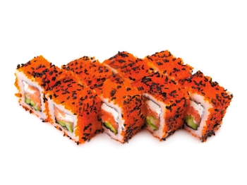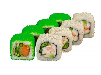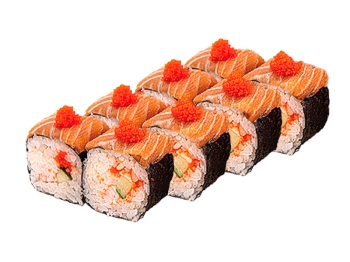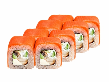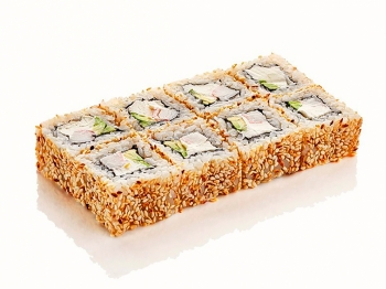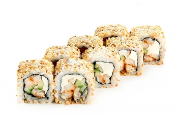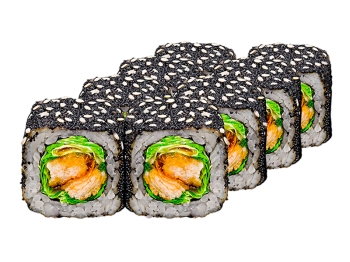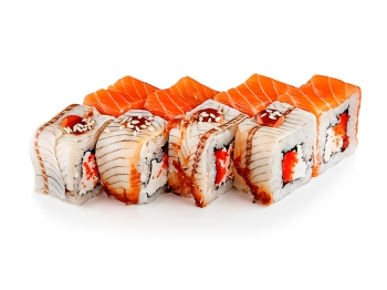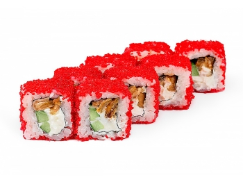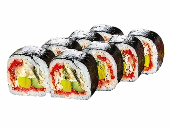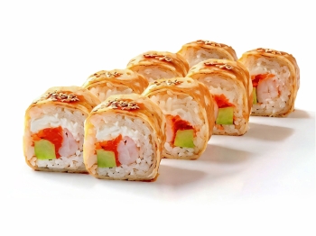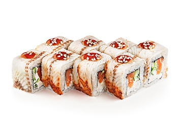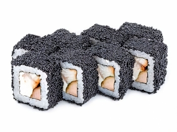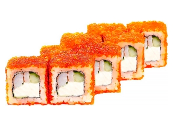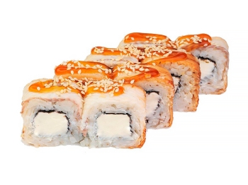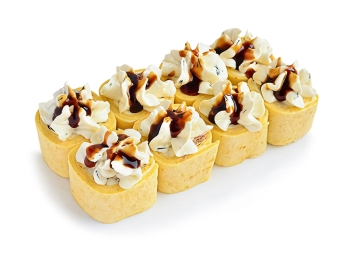 рис, креветка тигровая, омлет японский, сыр, тобико, авокадо, кунжут, соус унаги